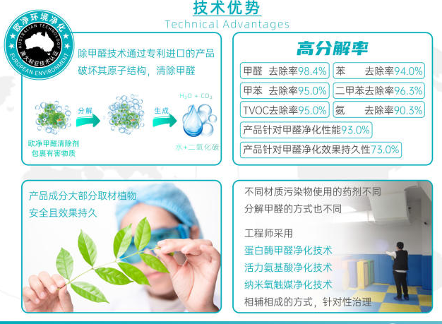 倡导零甲醛呼吸,致力于国内外进口技术研究成功引进澳大利亚专利技术,可轻松解决室内空气重度污染,甲醛治理、苯、甲苯、二甲苯、TVOC等有害物质。降解刺鼻油漆等异味。